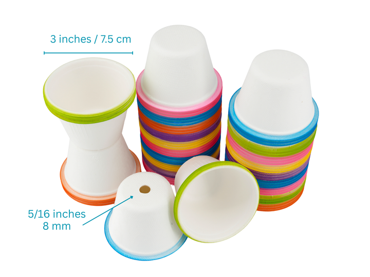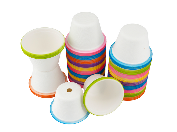 These bagasse cups come in various shapes and sizes, with and without holes. We offer generous quantities to provide you with good value.